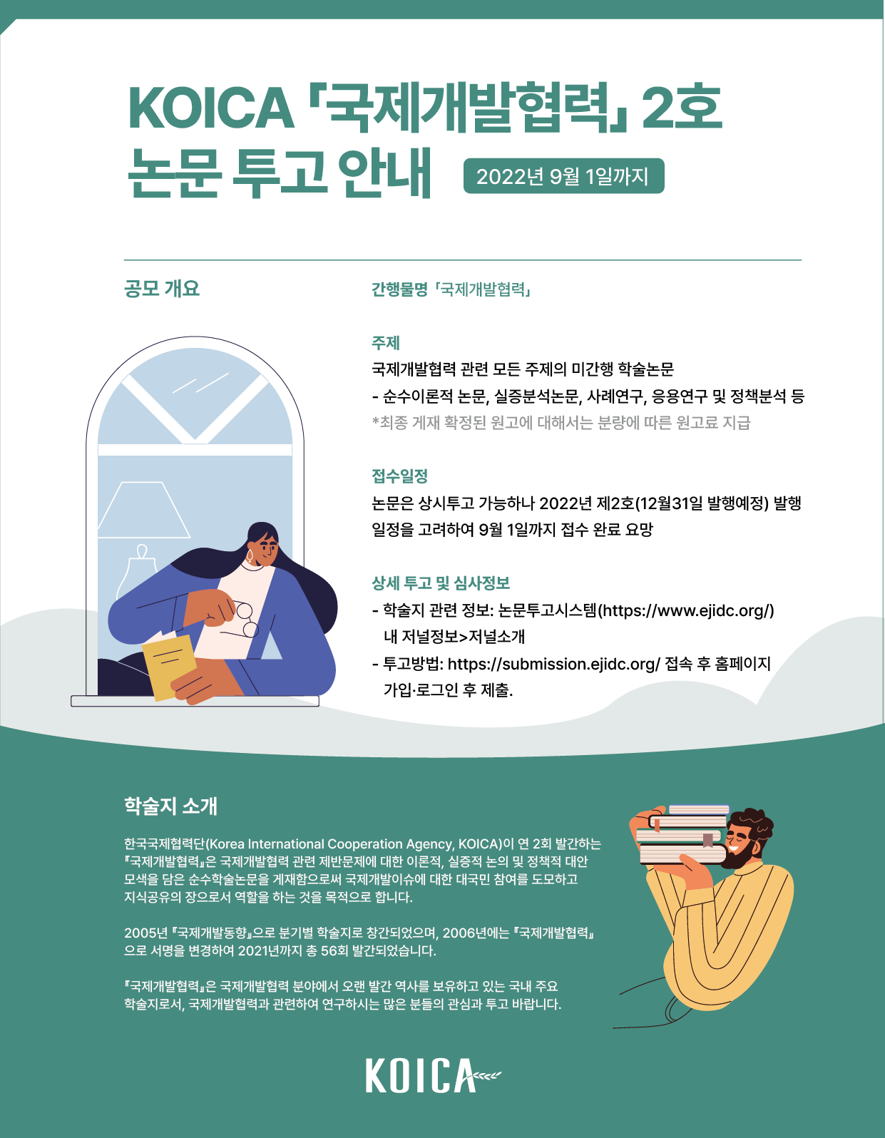 - [한국국제협력단] KOICA 학술지 『국제개발협력』 2022년 제2호 게재논문 공모 안내