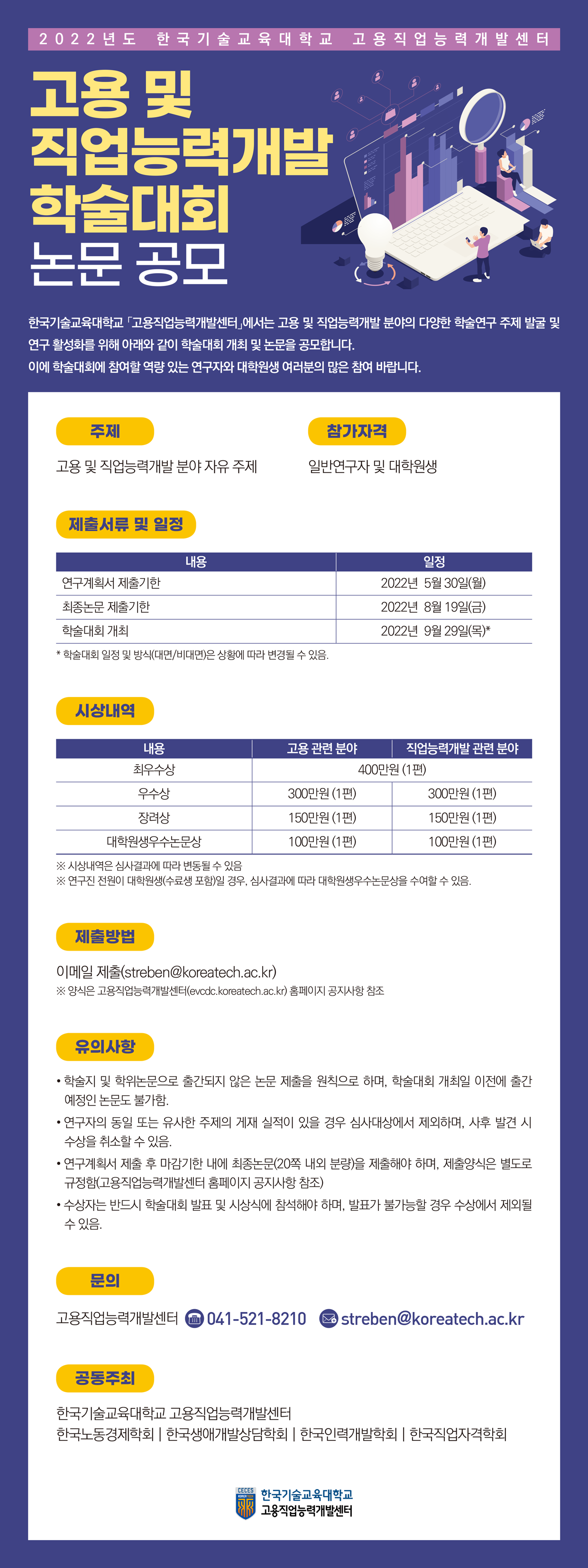 - [한국기술교육대학교] 2022년도 한국기술교육대학교 고용직업능력개발센터 고용 및 직업능력개발 학술대회 논문 공모 안내