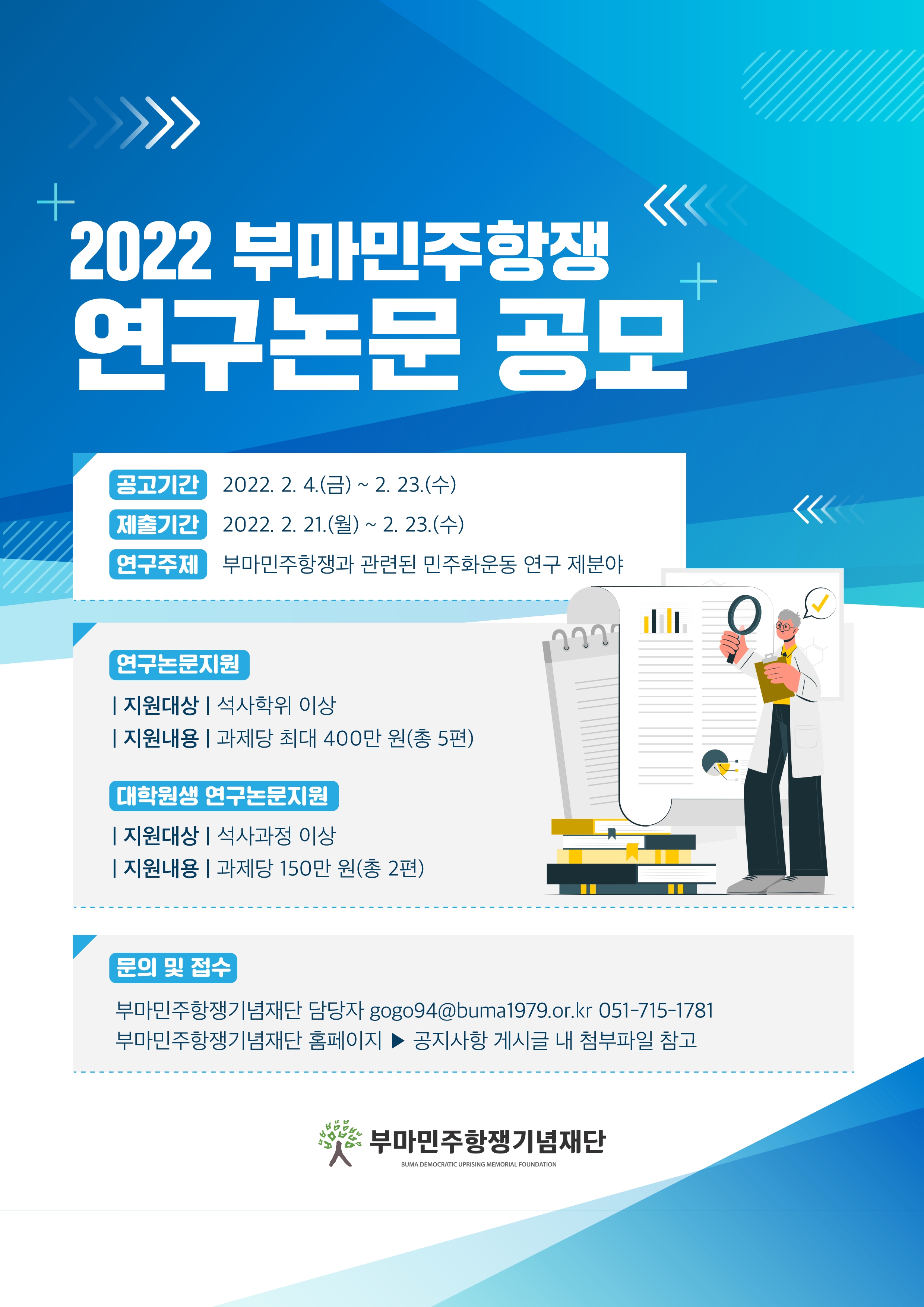 - [부마민주항쟁기념재단] 2022년 부마민주항쟁기념재단 <연구논문 공고> 홍보협조 요청