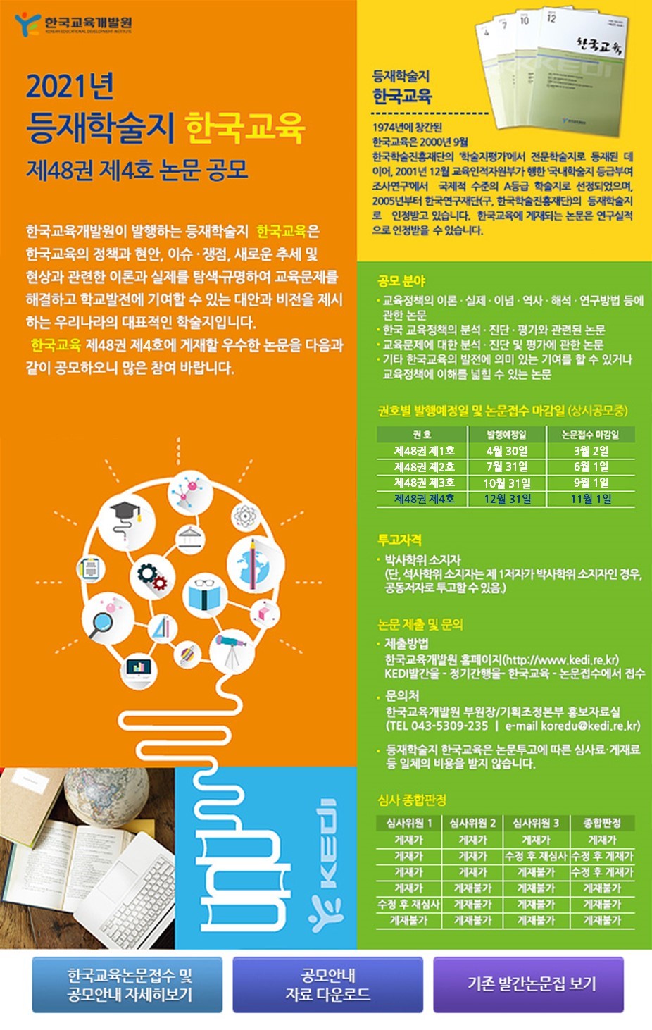 - [일반공지] [한국교육개발원] 등재학술지 한국교육 제48권 제4호 게재 논문 공모 안내
