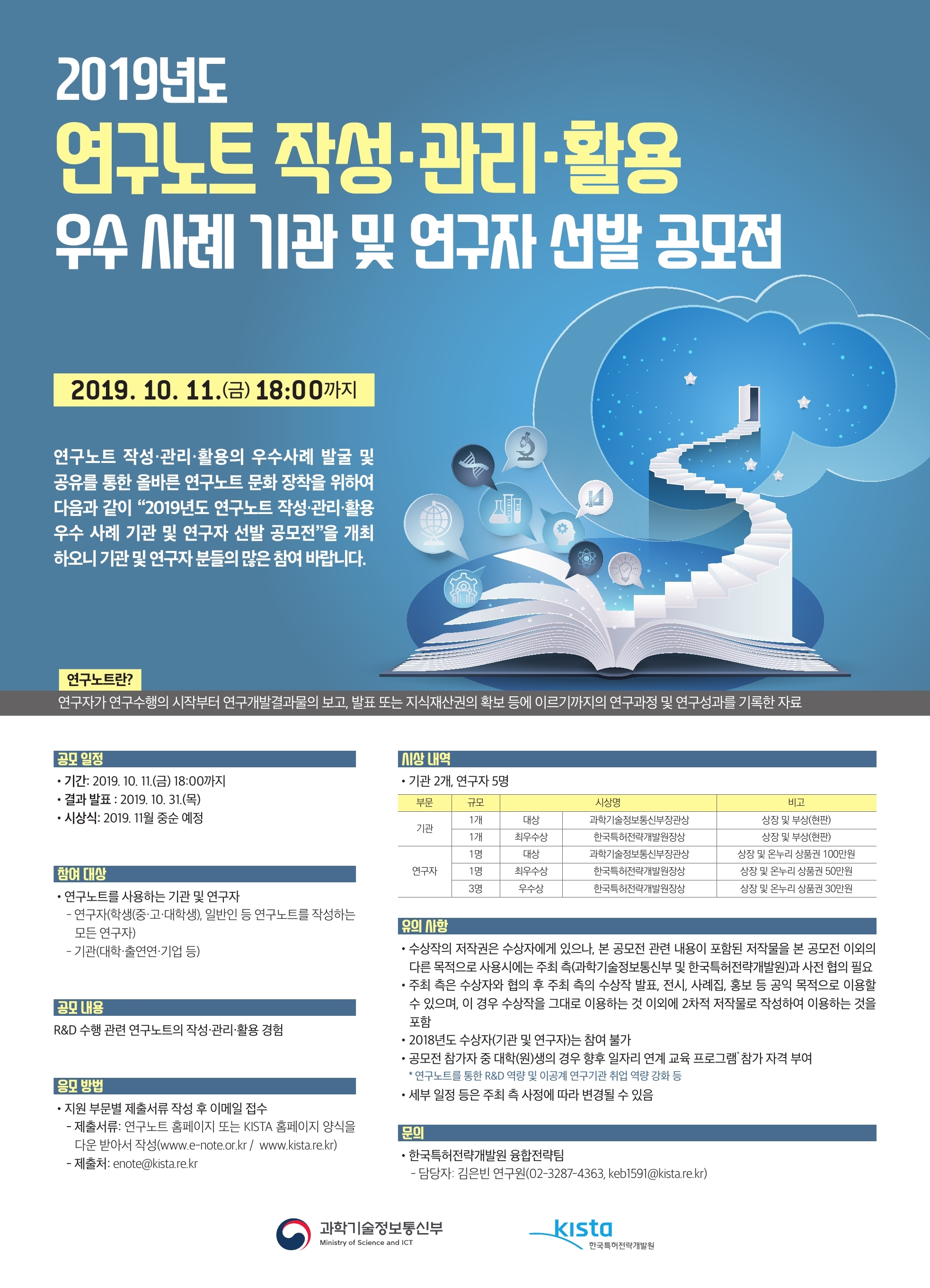 - [과학기술정보통신부] 2019년도 연구노트 작성 · 관리 · 활용 우수사례 공모전 개최