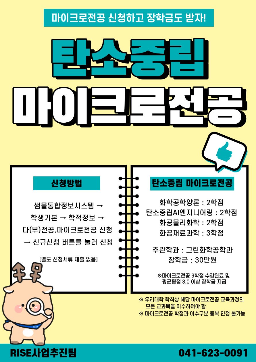 | 천안 [학사] | [충남RISE사업]2026학년도 충남RISE사업 탄소중립 마이크로전공 교육과정 안내 |
